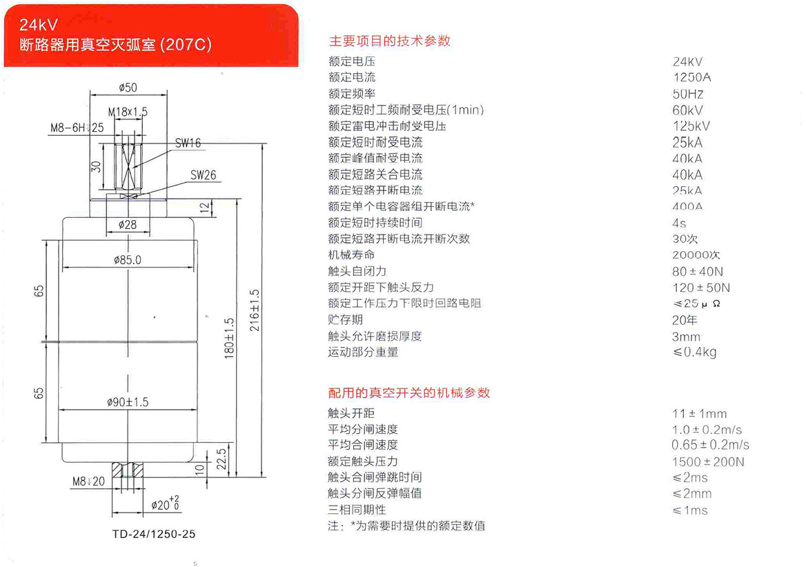 24kV断路器用真空灭弧室(207C)