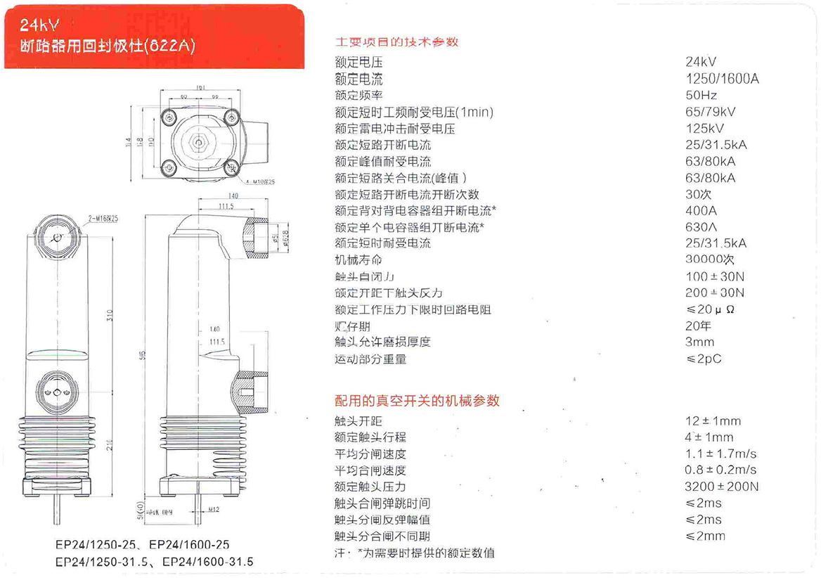 24kV断路器用固封极柱(822A)