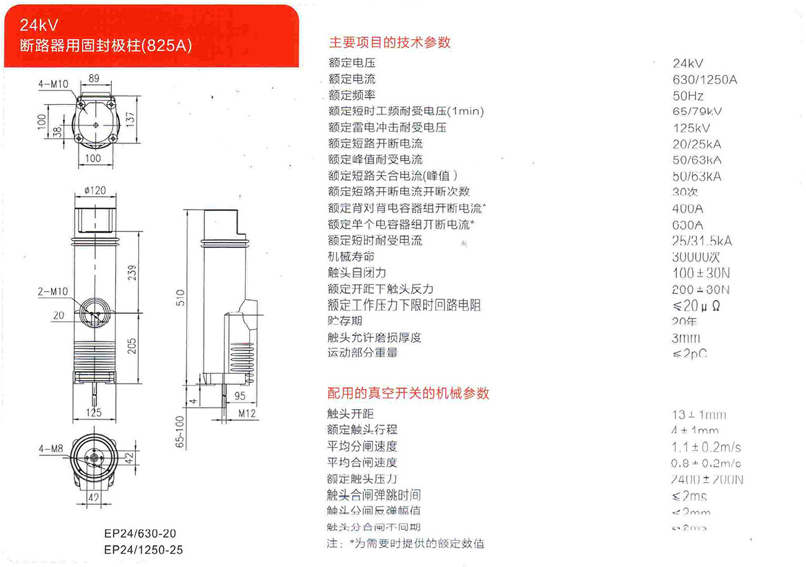 24kV断路器用固封极柱(825A)